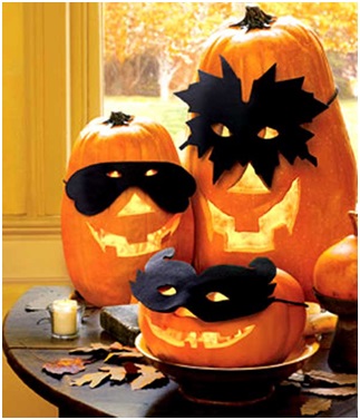 Chỉ cần một quả bí ngô lớn, sau đó bạn dùng dao khoét lên đó một khuôn mặt, rồi thắp nến bên trong, đặt trong phòng khách cũng với những cây nến là những chuỗi hạt, là ngôi nhà bạn đã có thể tràn ngập không khí Halloween rồi.