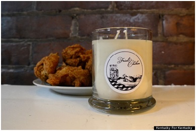 Đây là một trong những sản phẩm nhằm quảng bá cho thương hiệu gà rán của hãng Kentucky for Kentucky được chế tạo bởi cô Kathy Werking. Để tạo ra loại nến này cô đã rán gà trong sáp đậu nành tự nhiên rồi thêm vào một số thành phần bí mật. Quy trình sản xuất loại nến này không hề đơn giản nên số lượng nến đến nay mới chỉ được sản xuất với một số lượngrất là khiêm tốn. Hãng Kentucky for Kentucky đã đưa sản phẩm nến thơm mùi gà rán lên web công ty với lời quảng cáo: "Hãy đem mùi món gà rán thơm ngon vào trái tim và ngôi nhà của bạn với sản phẩm tuyệt vời nhất của chúng tôi". Để phục vụ cho chiến dịch marketing của mình, hãng Kentucky for Kentucky còn còn tạo ra nến thơm mùi đồ uống mang tên Ale 8 và nến có mùi khiến họ nhớ đến trường đua ngựa nổi tiếng Kentucky Derby.